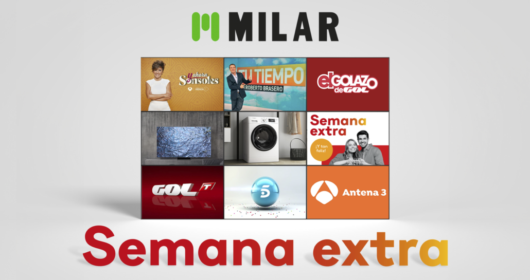En el marco de la campaña, Milar ha planificado telepromociones en espacios de alta audiencia en cadenas como Antena 3, Telecinco, GOL TV y TEN, reforzando así su presencia y visibilidad en medios de comunicación.